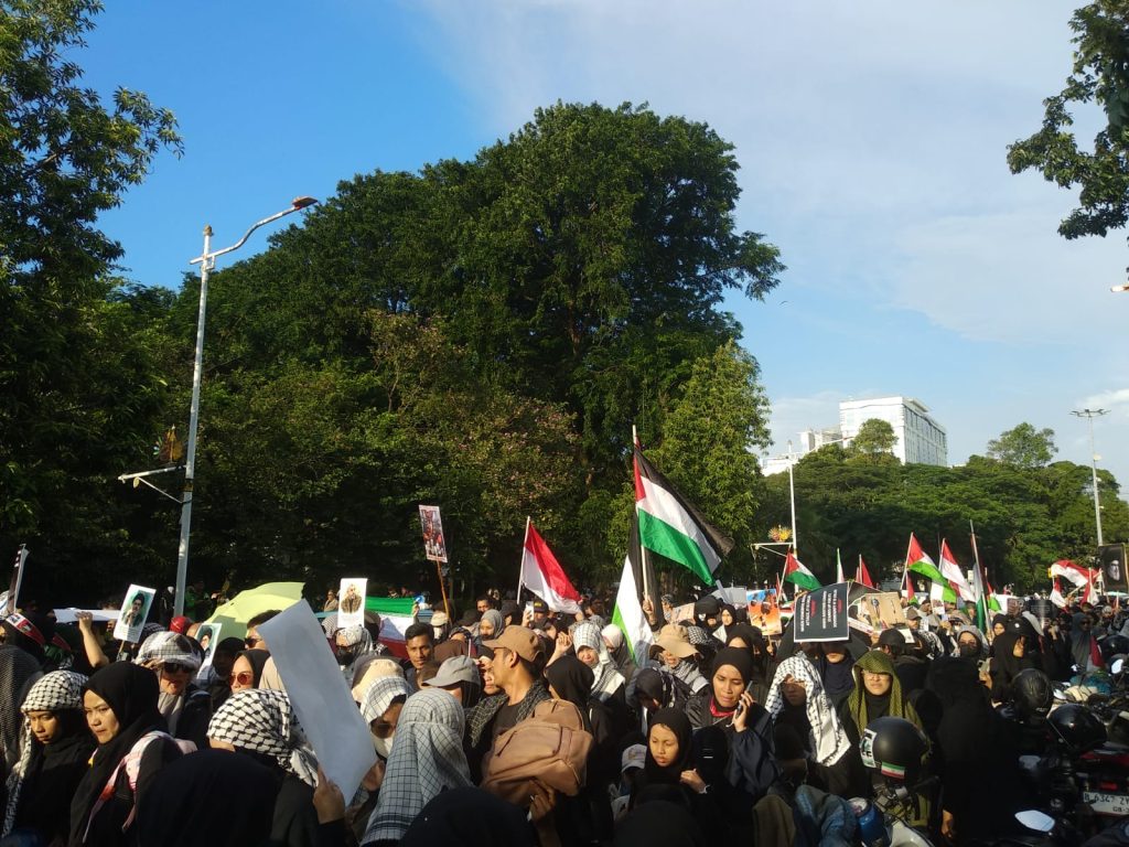 Peserta aksi juga menilai kebijakan pembangunan permukiman baru serta perubahan komposisi penduduk di wilayah Palestina sebagai upaya yang dapat menghapus identitas sejarah dan sosial masyarakat setempat.